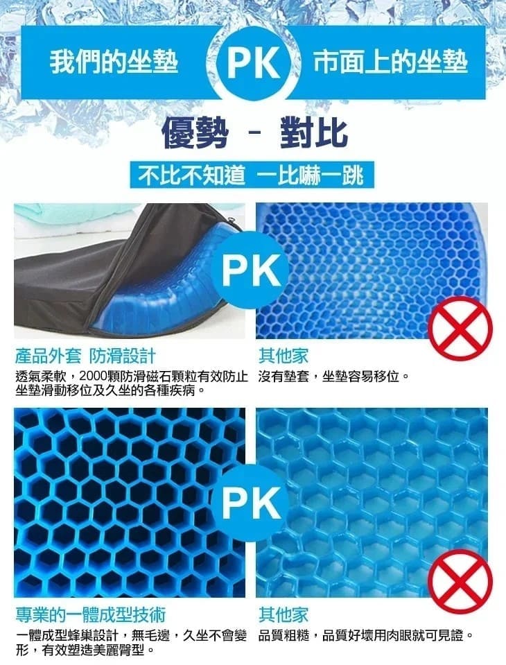 2分鐘前【買一送一】涼爽透氣蜂巢冷凝膠坐墊 - 【超夯活動】三入組NT$1399 每件都送坐墊布套
