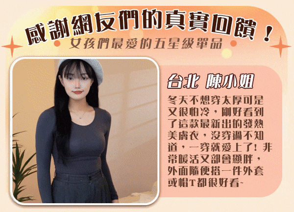 4分鐘前滋養肌膚+保暖二合一 輕薄保暖,越穿肌膚越白嫩 日本銷售排名第一【美しい肌】新秋冬美肌發熱衣 - 「新品嘗鮮八折優惠」任選1套NT$888