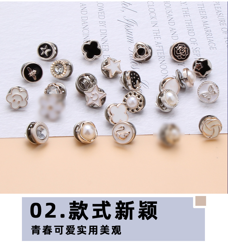 15分鐘前免钉防走光扣 衬衫开衫领口固定調節鈕扣 低领装饰胸针 別針 可拆卸隐形扣子 - 優惠價10入組799
