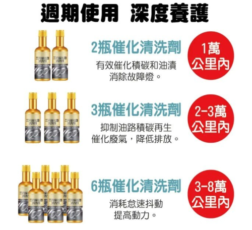 20分鐘前免拆除積碳 【黃金三元催化清洗劑】淨化尾氣、減故障燈、清除積碳、降低油耗、動力更加強勁,輕鬆通過年檢 - 五萬公裡內【節省油耗】三元催化清洗劑10瓶 NT$1198